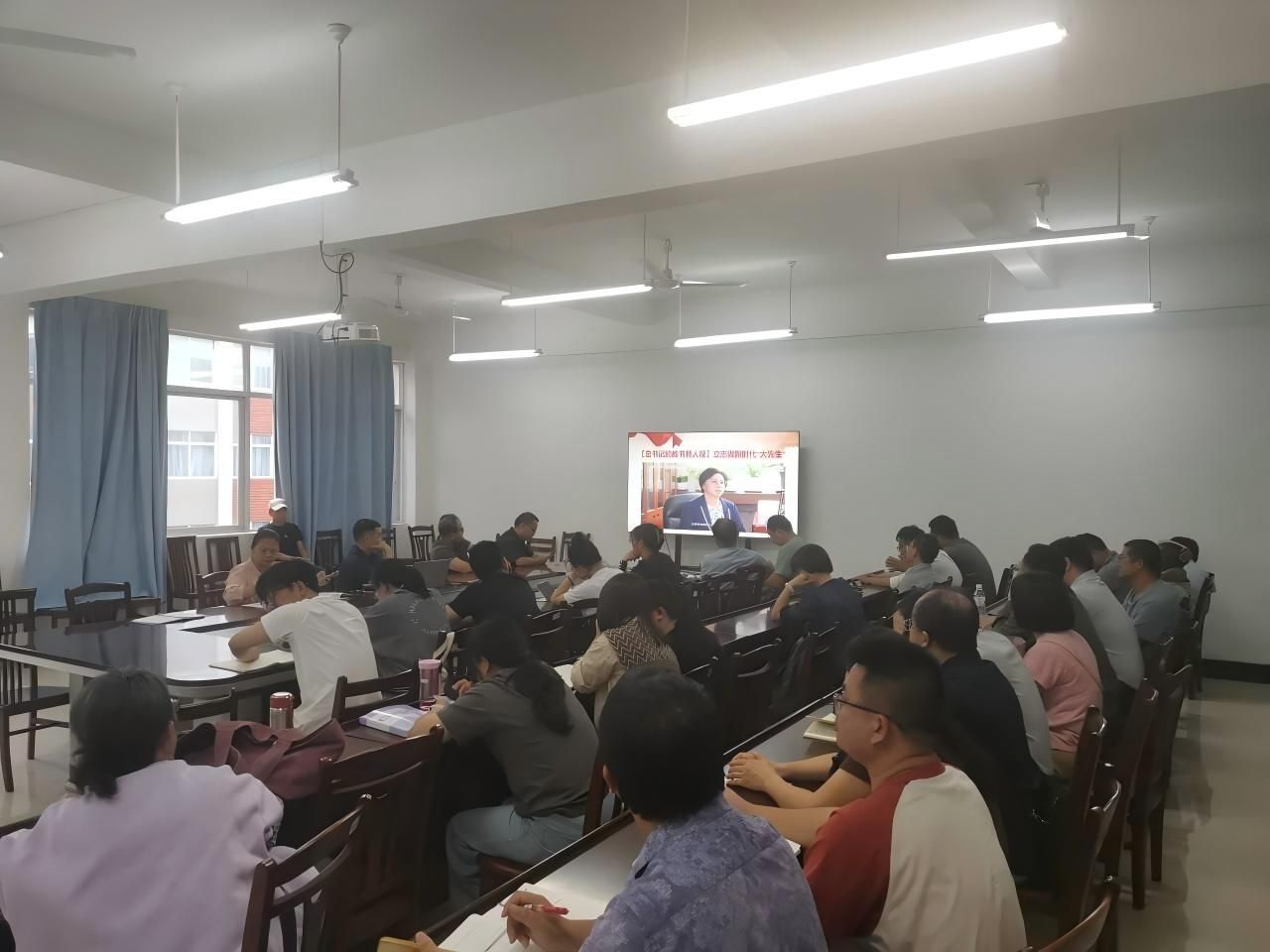 随后,全体教师集体观看了《习近平总书记的教书育人观》系列时政短视频,立志做新时代“大先生”。一是大先生要坚定理想信念,做胸怀“国之大者”的典范。二是大先生要坚持立德树人,做修德立身的示范。三是大先生要坚守教育初心,做教书育人的模范。四是大先生要潜心研究真学问,做学术创新的典范。