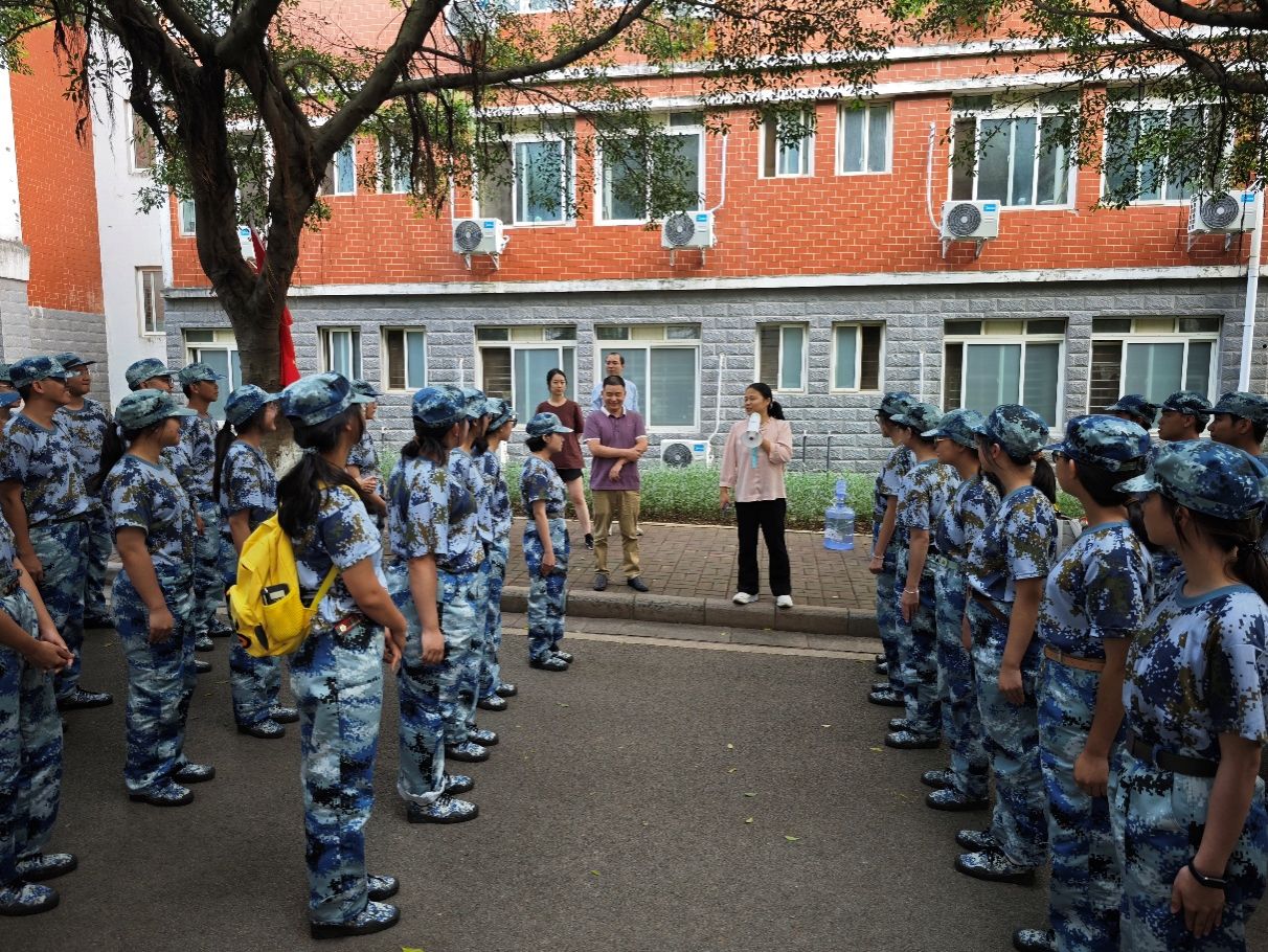 随后,学院主要负责人代表学院向承训教官表示衷心感谢,对2025级新生在军训中展现出的饱满热情与昂扬斗志给予高度肯定,鼓励同学们将个人成长融入国家发展大局,发扬坚韧不拔、勇于攻坚的航天精神。她强调,军事训练是锤炼意志、强健体魄的重要契机,希望同学们珍惜这段特殊经历,在严格训练中磨砺品格、收获成长。大家纷纷表示,学院老师的关怀让他们感受到理学院大家庭的温暖,也进一步坚定了圆满完成军训任务的信心。他们表示,将以更加饱满的精神状态投入后续训练与未来的学习生活。