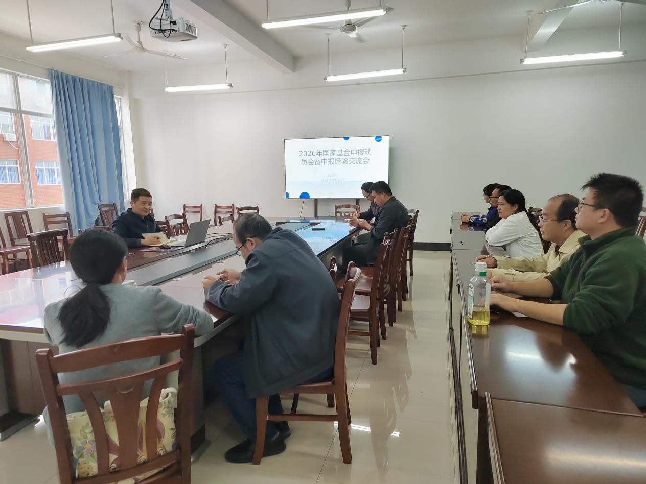 为扎实推进国家级科研项目申报工作,提升项目申报质量与成功率,10月29日下午,理学院在学院会议室组织召开了2026年度国家级科研项目申报动员会暨申报经验交流会。会议由院长吴果林主持,学院全体博士、教授参加了会议。