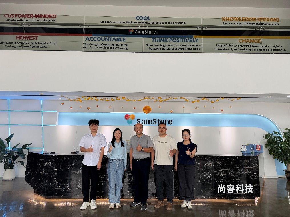 在圆满完成学生实习检查工作后,柯院长与唐老师一行先后走访了位于东莞的尚睿科技有限公司。在企业负责人的陪同下,学院代表参观了公司的工作环境,并与公司管理层及技术骨干进行了座谈交流。双方围绕企业发展、人才需求等方面进行了深入探讨,重点了解了该公司在前端开发、大数据分析、智能选品等岗位上的招聘要求与未来规划,并就建立实习就业基地、开展科研项目合作等潜在合作模式交换了意见。
