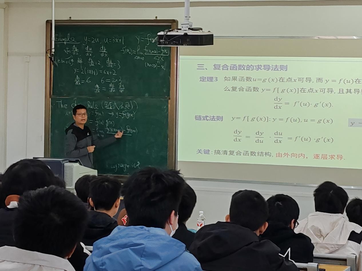 在讲解高阶导数部分时,唐教授则着重引导学生认识到基础的重要性,他强调“学会了一阶导数,高阶导数便是步步为营、循序渐进的过程”,并以此类比做人做事需脚踏实地、一步一个脚印的踏实态度。整堂课师生互动频繁,学生参与热情高涨,课堂氛围生动活泼,充分展现了教学相长的良好效果。