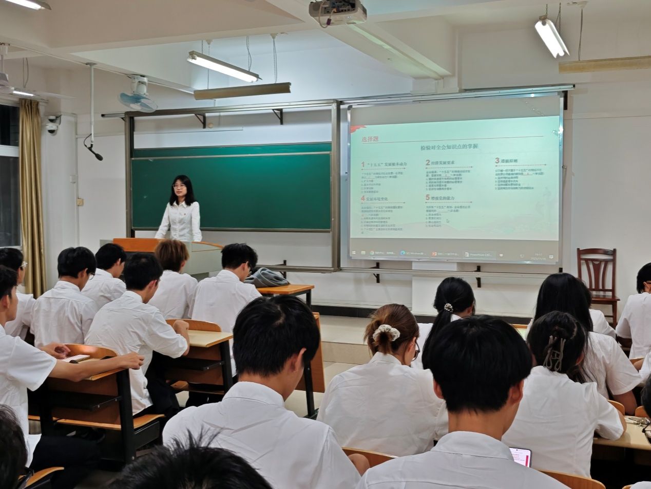 本次挑战赛以“以赛促学、以学促行”为宗旨,在全院范围内营造学习全会精神的浓厚氛围。活动吸引了各年级学生踊跃参与,现场座无虚席,气氛热烈。比赛内容紧扣党的二十届四中全会《建议》,包括“十五五”时期的指导思想、主要目标、战略任务,以及在推进科技自立自强、全面深化改革、促进区域协调发展、推动绿色转型等重点领域的部署。比赛采用积分制抢答模式,现场竞争激烈。在必答题环节,选手们准备充分、应答如流,展现出扎实的理论素养。进入抢答环节后,气氛更趋白热化,选手们全神贯注、反应敏捷,积极争取每一次答题机会,精准的作答不时赢得观众阵阵掌声。