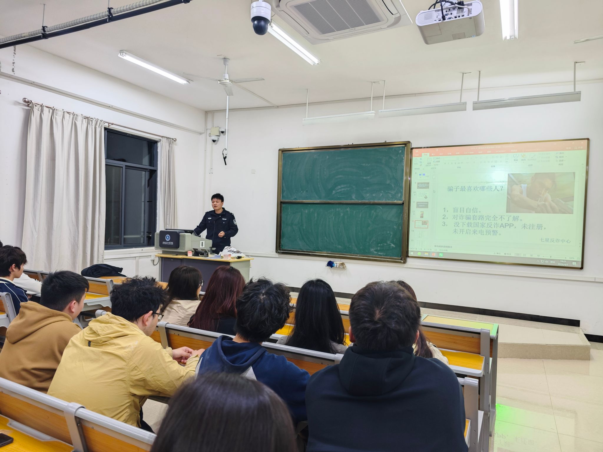 活动现场,朝阳派出所党支部的民警结合近期高发的校园电信网络诈骗案例,为在座的学生干部进行了深度解析。民警通过“以案说法”,详细剖析了针对大学生的新型诈骗手段。理学院老师在主持中强调,学生干部要继承雷锋同志“螺丝钉”般的奉献精神,不仅要自身识诈防诈,更要发挥“领头羊”作用,将反诈知识传递给每一位同学。